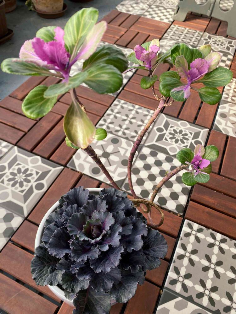 4年目葉牡丹と黒の葉牡丹寄せ植え