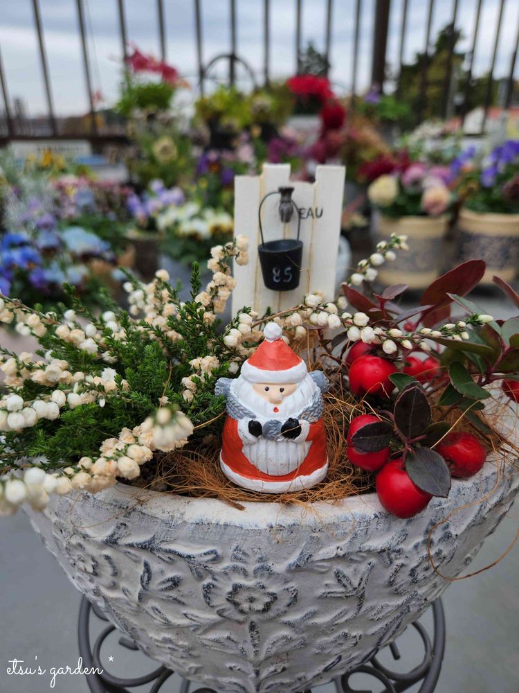 わぁ!サンタさんと、クリスマスの🎄雰囲気たっぷりの寄せ植え可愛い〜😍💕