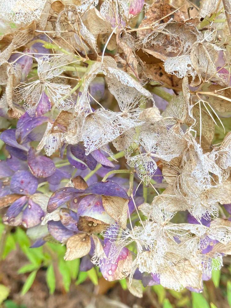 お出かけ先,枯れたアジサイ,スマホの投稿画像