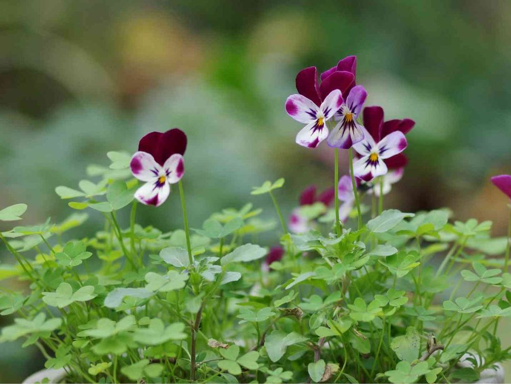 こぼれ種のビオラさん、オオキバナカタバミのうちに住みつきました❀︎.(*´▽︎`*)❀︎.