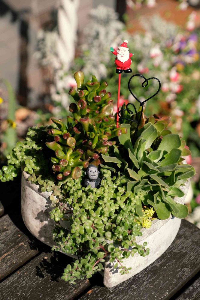多肉の寄せ植え鉢にサンタさんをお迎えしました🎅