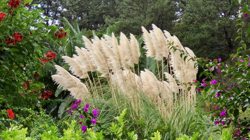 パンパスグラスの迫力に負けない南国の花たちですね😍