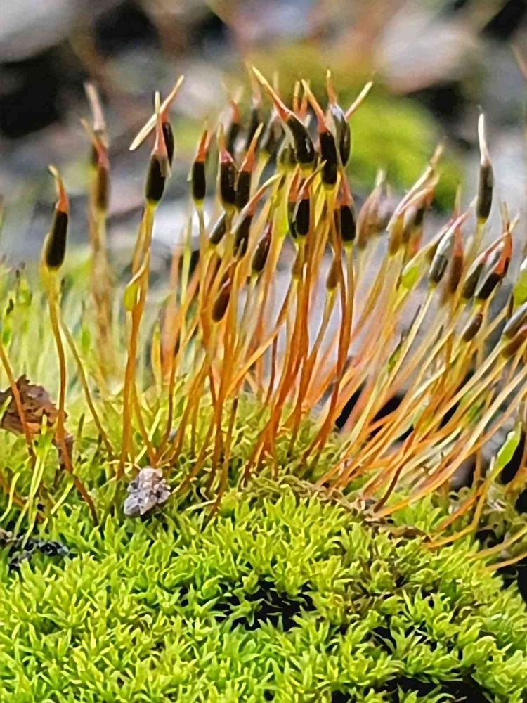ネジクチゴケの蒴、真っ黒になっていますね😲
