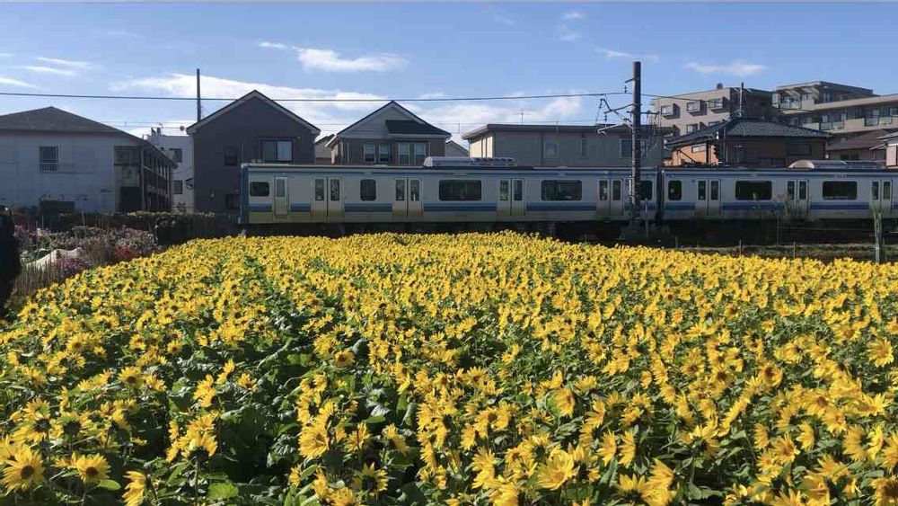 ここは、寒川神社近くの畑ほどは広くはありませんが、電車と一緒に見られるのがいいんですよね🌻