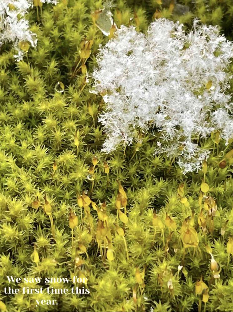 色んな草の上に雪がのっていましたが、苔が綺麗だったので、苔にしました✌️