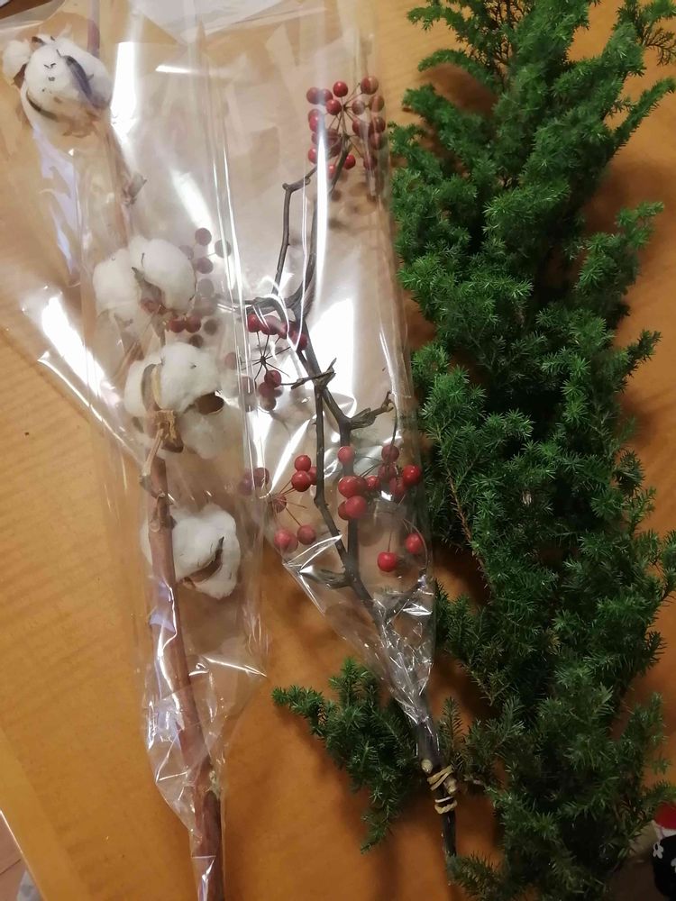 花屋でクリスマスっぽい木や実を買ってきました。