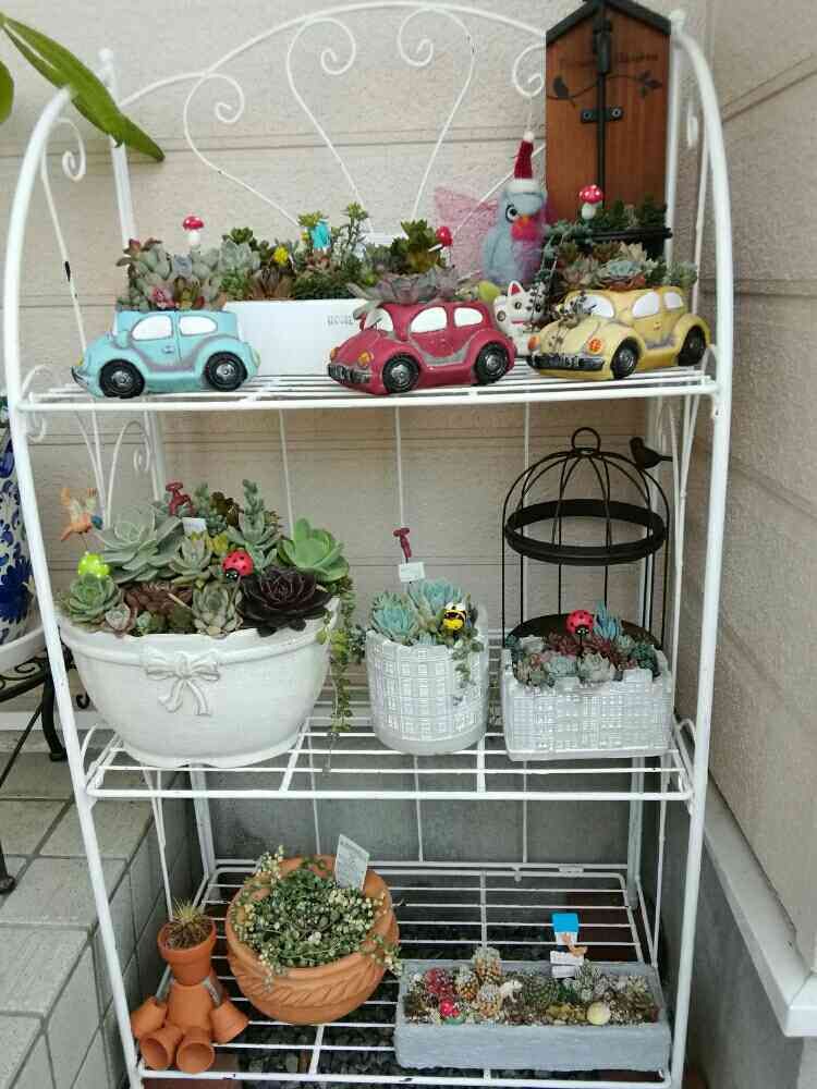 白い棚素敵💕寄せ植えも映えるね🌵🌸