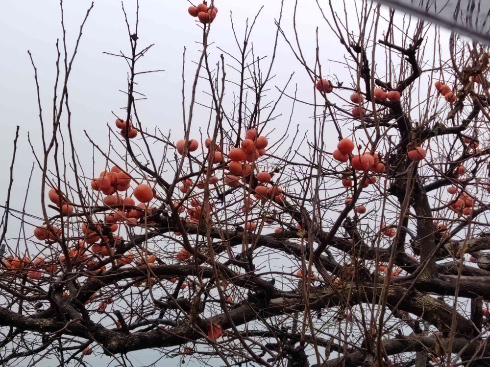 最近は雪が降る様な頃になっても柿の実が収穫されません。