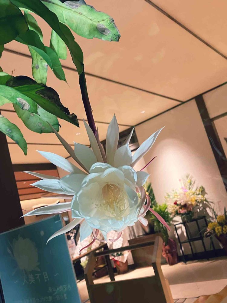 宿泊先で、月下美人が咲くところを初めて見れました!これは夜8時頃の開いてる途中で、深夜に全開して、朝しおれてましたー。