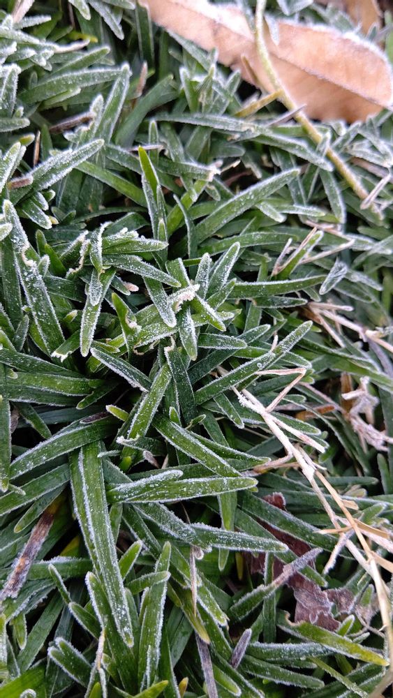 リュウノヒゲに霜がついていました❗寒くなってきましたね🌬️