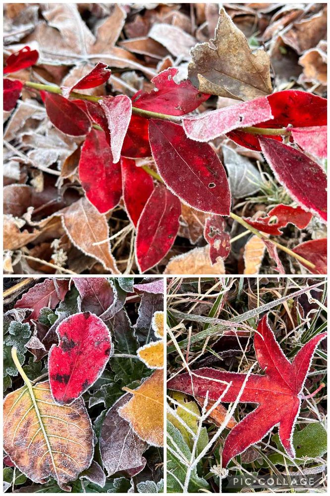 今だけの自然の装い、紅葉に霜の縁取り、自然は常にお洒落です💕