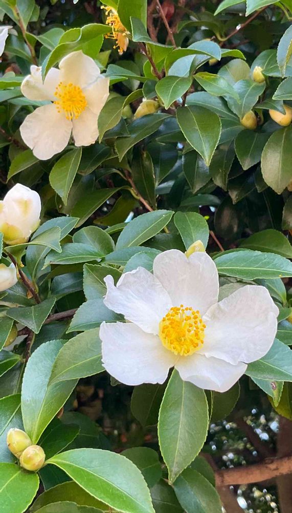 白いサザンカ…爽やかねぇ…🤍🤍💚🤍🤍🌿…