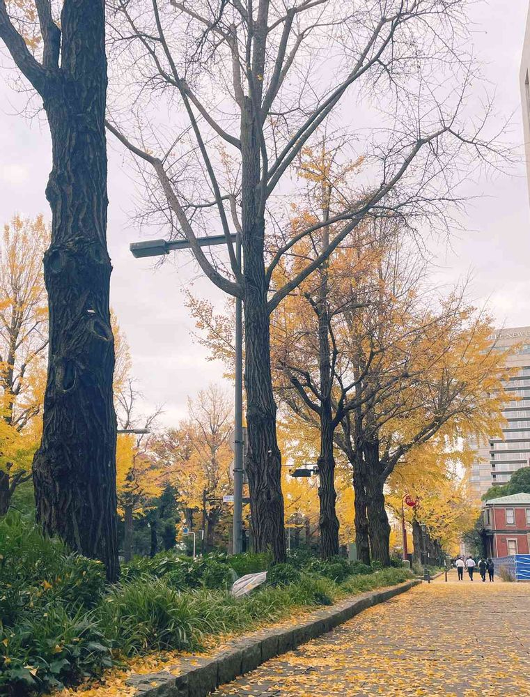 黄金色の雪を降らせて歩道を埋めたかのよう...🍂