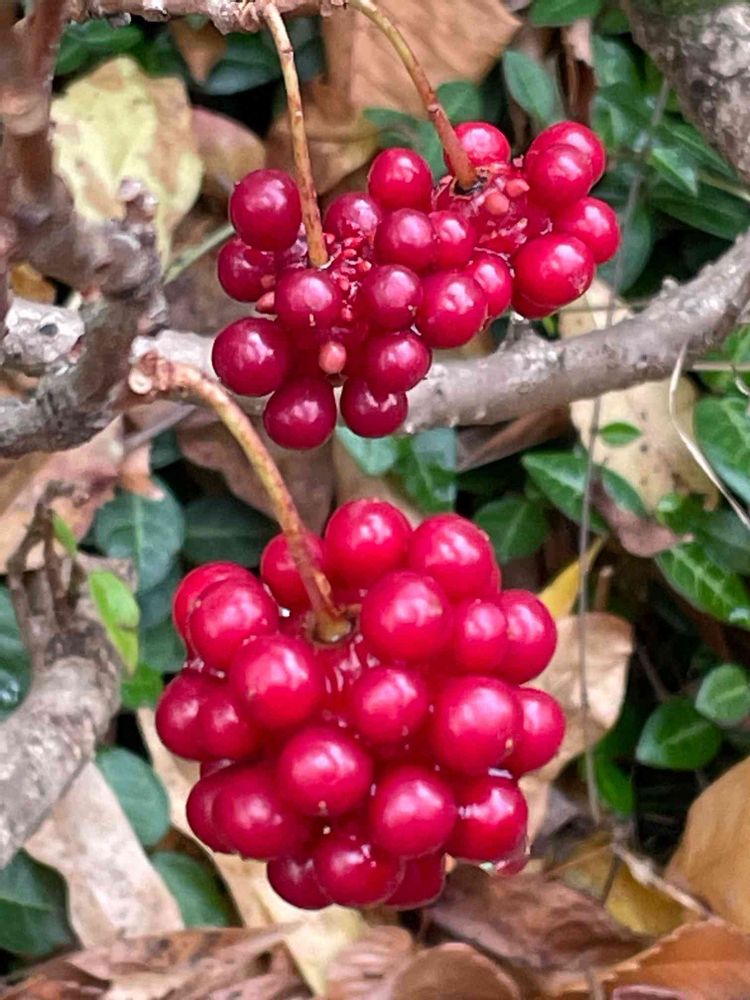 以前はまっていた、天然石のビーズアクセサリーを思い出しました。この実の方が綺麗だけどね。