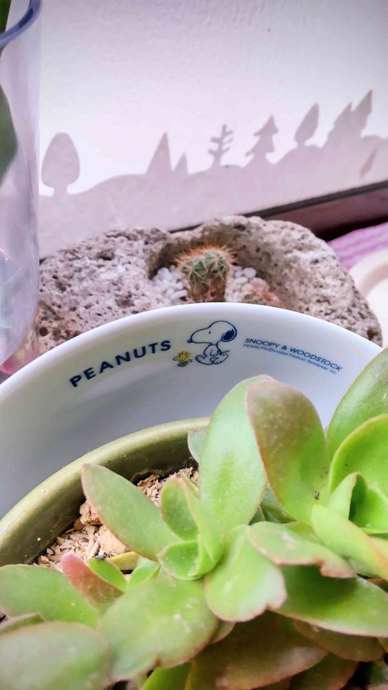 窓際にあった鉢受けが、スヌーピーでした☺️💕