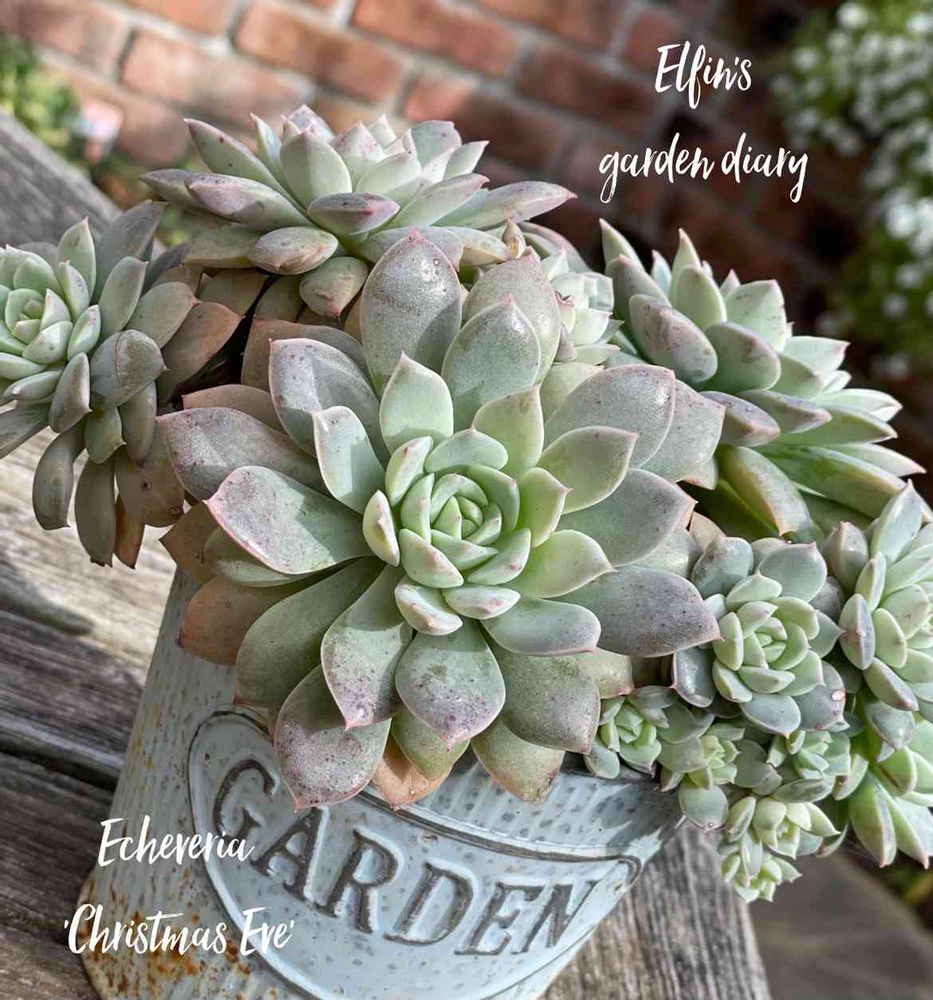 2019年の12月19日に載せた投稿をみると、どうやらエケベリア‘’クリスマスイブ‘’と言う種類のようです。その時は縁が赤く紅葉していましたが、今年は暖かいせいかまだ紅葉はしてないですね。