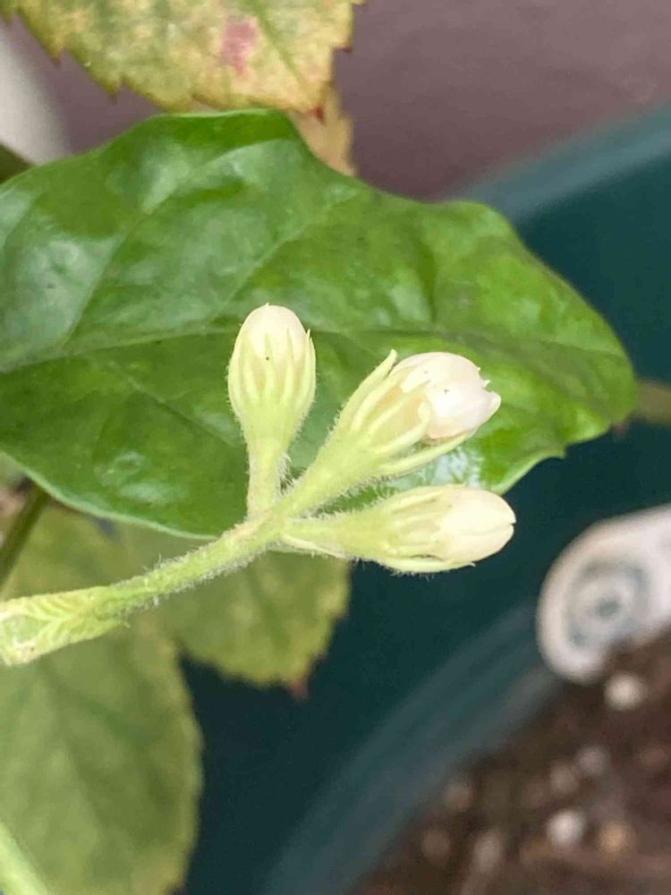 この夏初めてジャスミンを育ててみたの❣️たまたま朝の早めの時間に園芸店に行った時にジャスミンの花がまだ咲いていて(ジャスミンって夕方から咲く一日花らしいの)、その香りに誘われてお迎えしちゃった😘