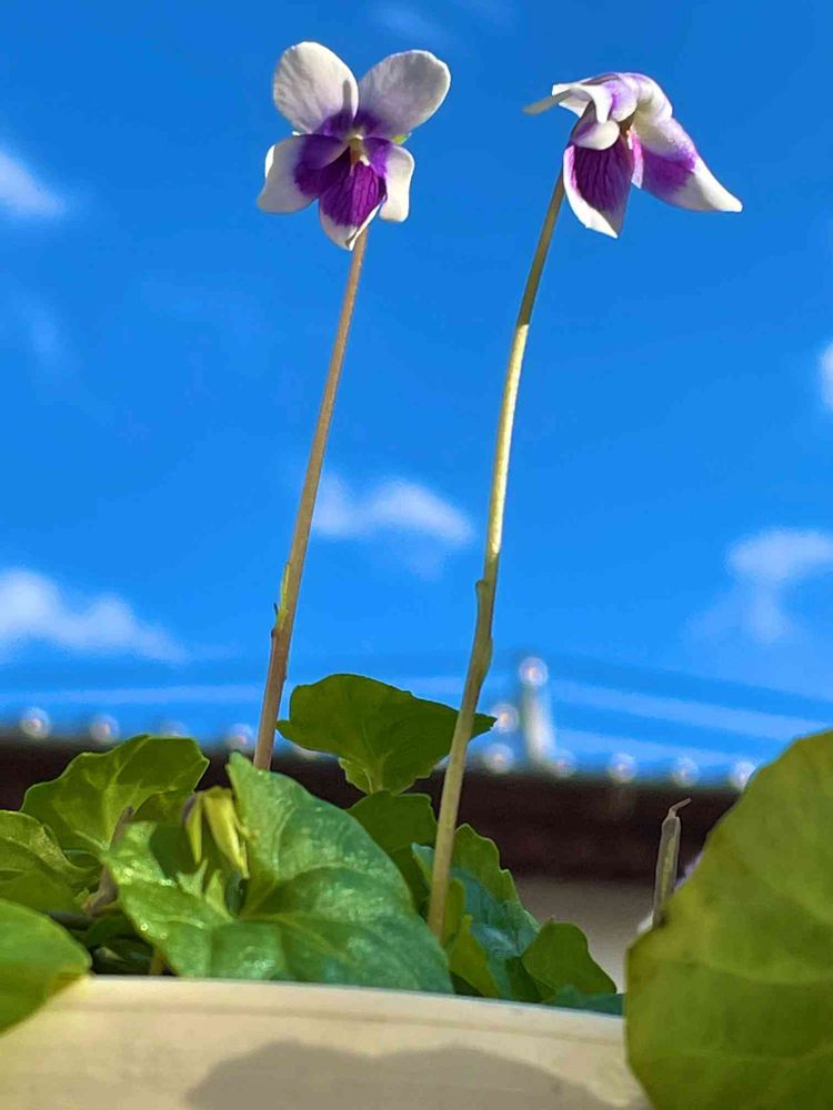サムライブルーの青空に可愛いスミレが良く映えています💙💙💙💙