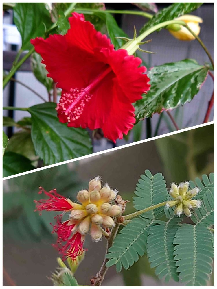 上:塗装工事でベランダはまだ使えないけどハイビスカス達は簡易ビニールハウスの中で夜はファスナーを締めて貰えるとはいえ北側なので寒いのに今日もまた頑張って小さい花だけど咲きました🌺