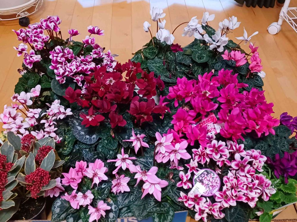 沢山のシクラメンですねね🤗綺麗ですけど、いろんな花に目移りされたのでは、ないでしょうか?私もいっぱい欲しい花が有るけど、飾る場所があまり無いので、諦めていますよ😮💨💦