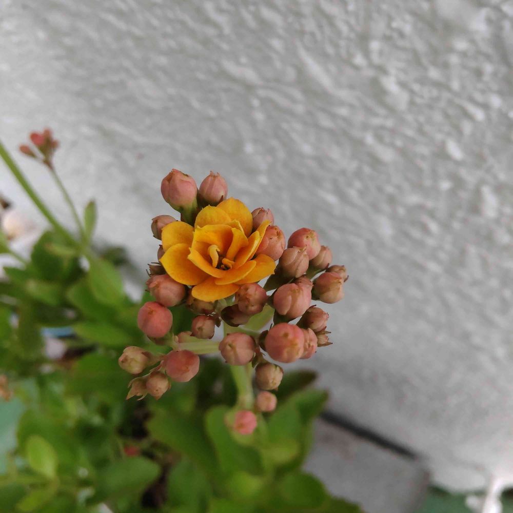 たくさんの蕾からの一輪🧡八重咲き今朝咲きました🥰