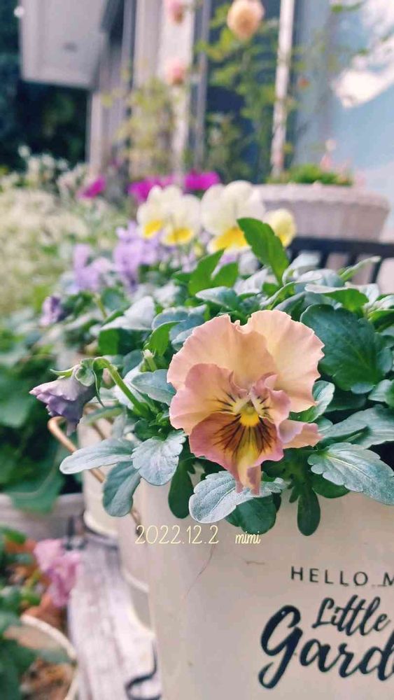 フリフリビオラが咲き始めました❤️鉢はDAISOなのに、200円?の