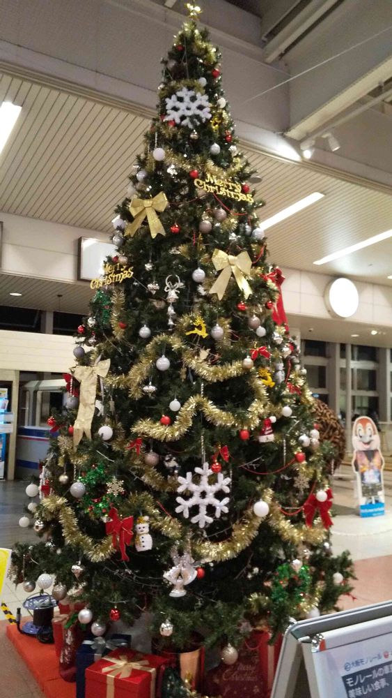 大阪モノレールの万博記念公園駅構内にて「クリスマスツリー」をパチリ!📸🎄🎅🦌😊🏙️✨