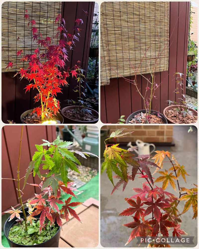 うちで一番大きなノムラモミジはうっかり夏に水切れさせてしまい葉っぱがカサカサに😣💦綺麗に紅葉しませんでした😭