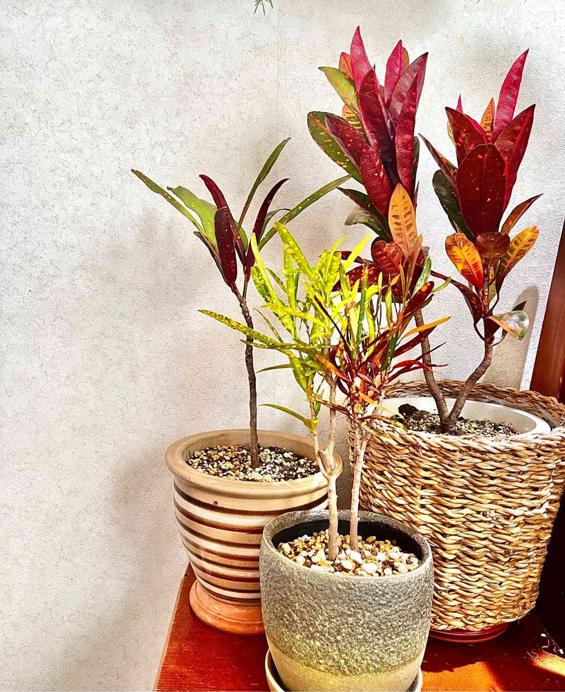 このクロトン、お父さんに一昨年挿し木を送って貰った子で4種類あってん。でも今年1つダメにしてしまった〜