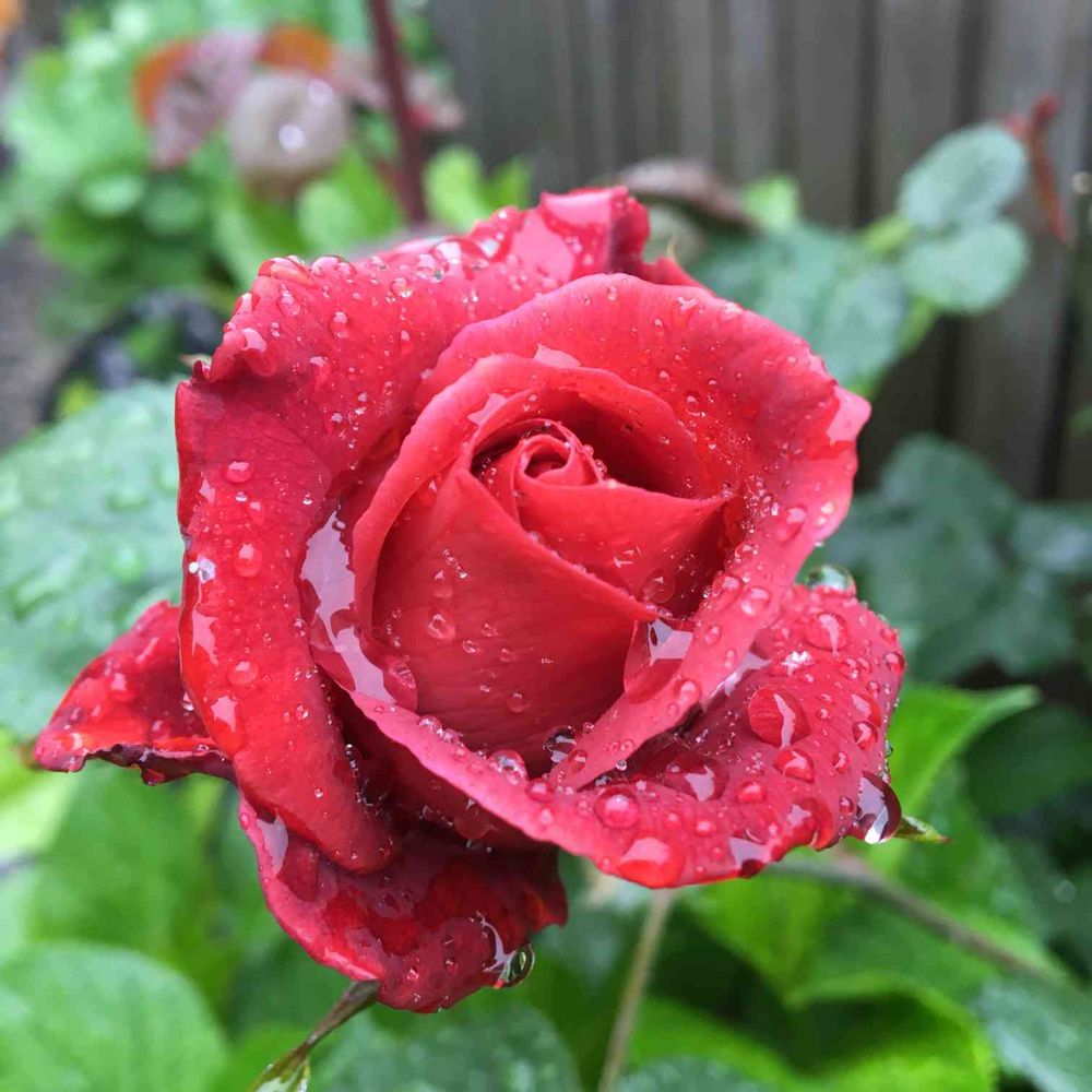 雨の中しっとり開花した🌹