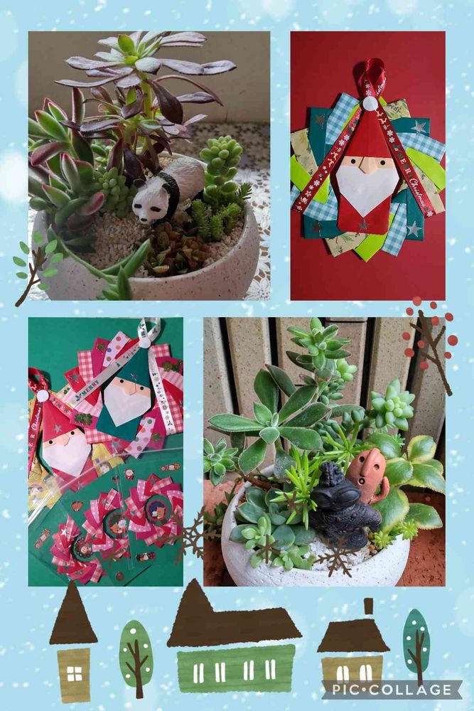 多肉ちゃんの寄せ植えはもちろん可愛く素敵ですが、折り紙がとても素敵で数回アップにして見せて頂きました〜