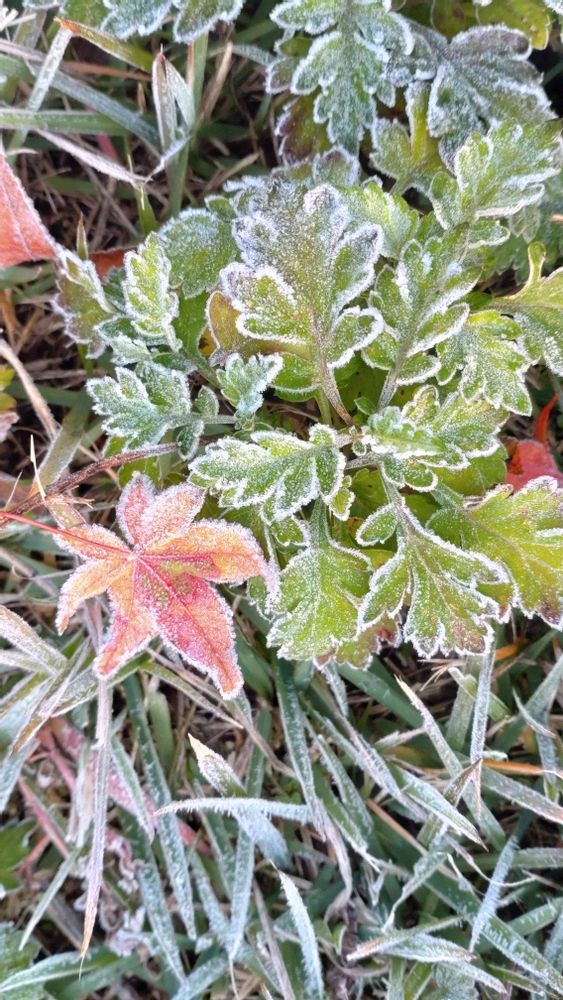 お化粧した葉たち🍁❄の撮影📱は霜がおりた日の楽しみです☺️🎶