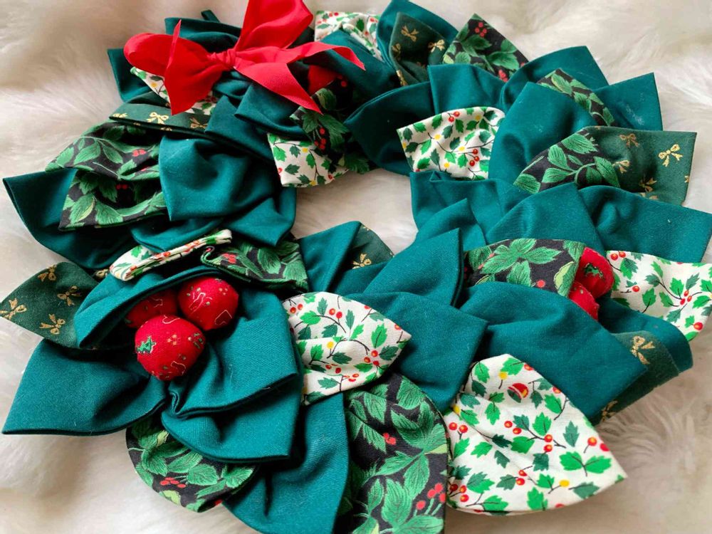 布で作ったクリスマスリースも