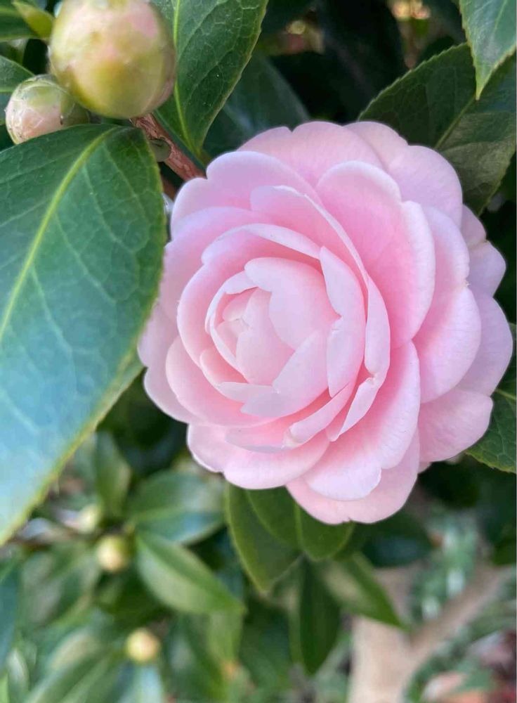 今年初の乙女椿さん見つけました!お上品な色で、とっても可愛らしいです^ - ^