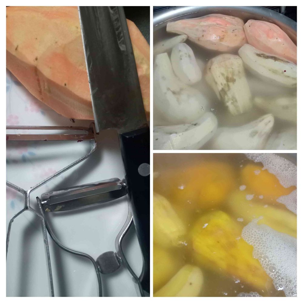 新しく改良された人参芋は色はきれいなのに 甘みがいまいちなので紅はるかを代わりにしています。