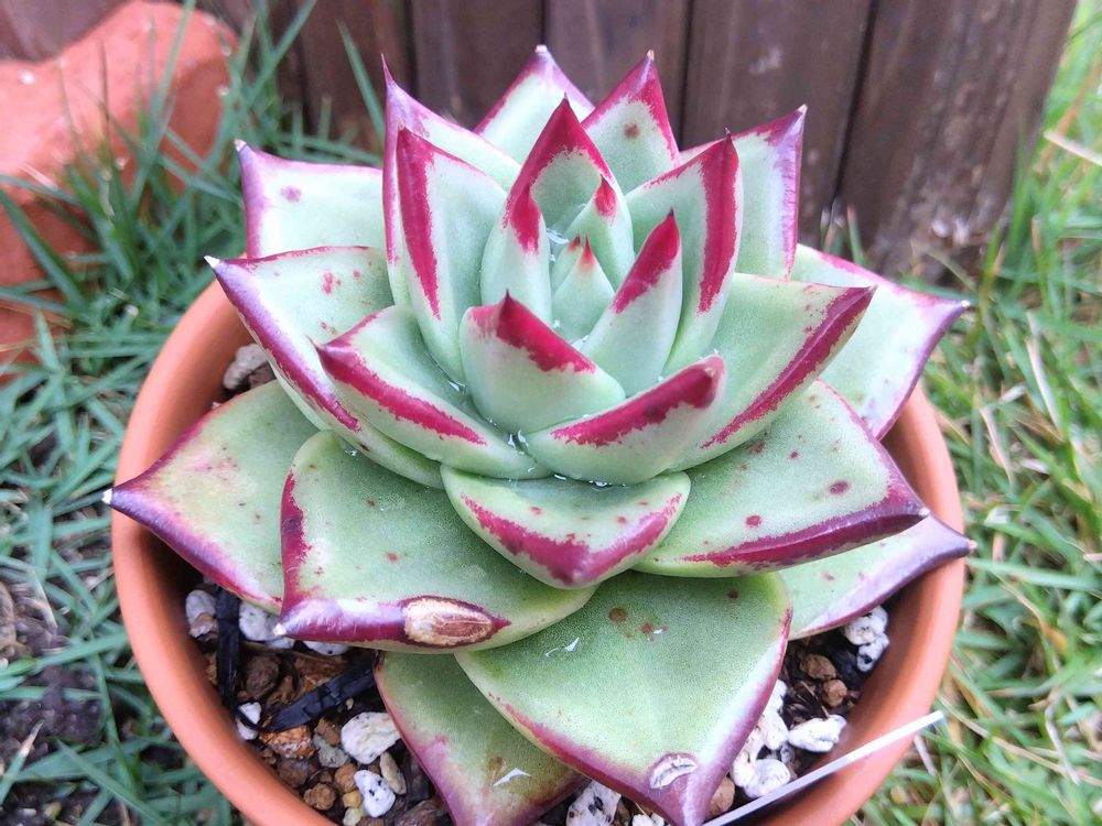 エボニーの夏越しが苦手なので、棚の奥に置いておいたら縁の赤が消えちゃったけど、無事に夏越し成功🤭❤️
