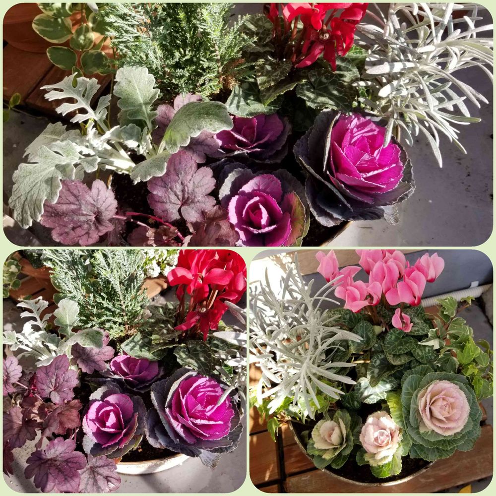 今朝葉牡丹の寄植えふたつ作りました😊