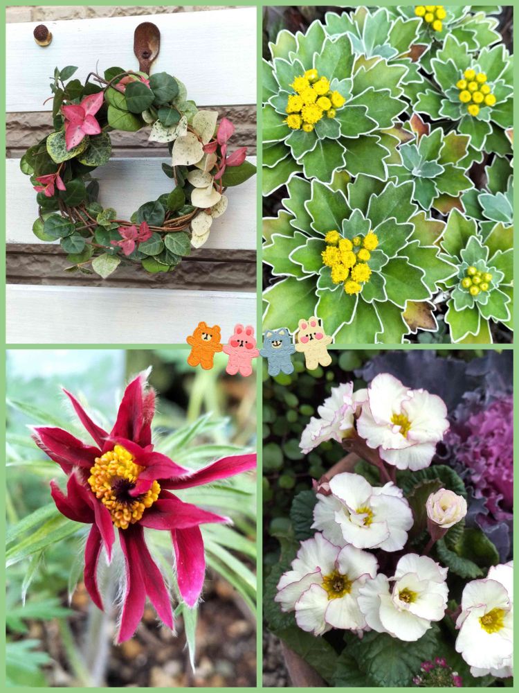イソギク、まるでフェイクのように見えましたよ❣️なんですか、そのかわいい葉っぱ😍😍😍ホワイトの縁取りや形がキュートでいいですね😚覚えておきます、イソギク😊ハツユキカズラのリースもめちゃかわです💕