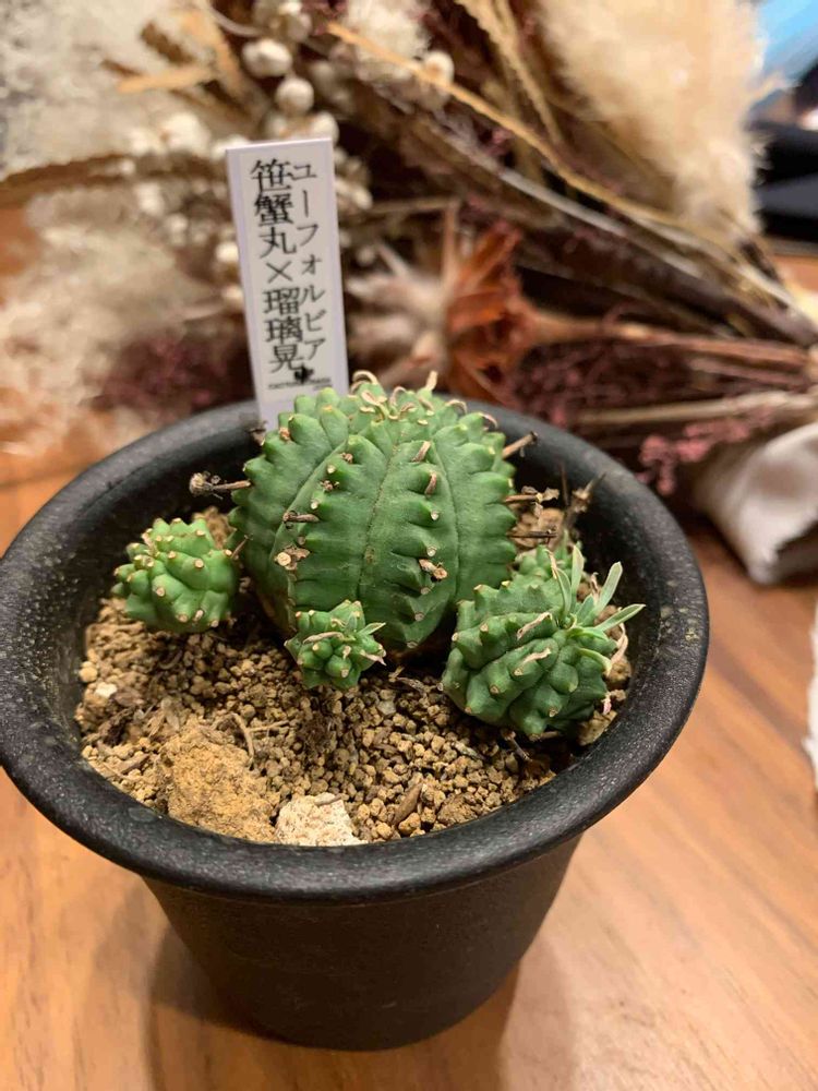 前に買ったユーフォルビア。見た目が好きすぎて買ったけど笹蟹と瑠璃晃のハイブリッドって育て方調べても出てこなくて、正直どう育てていいか分からない。とりあえず、水枯らし気味できてる