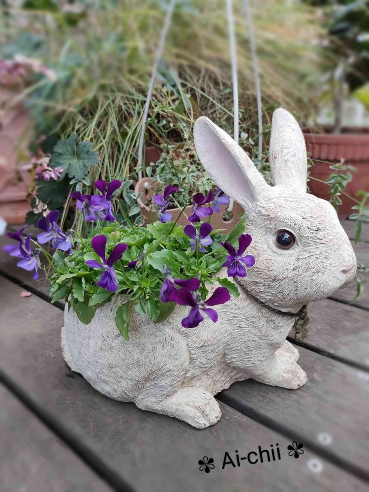 神戸ビオラのバニーさんをウサギの鉢に❣️