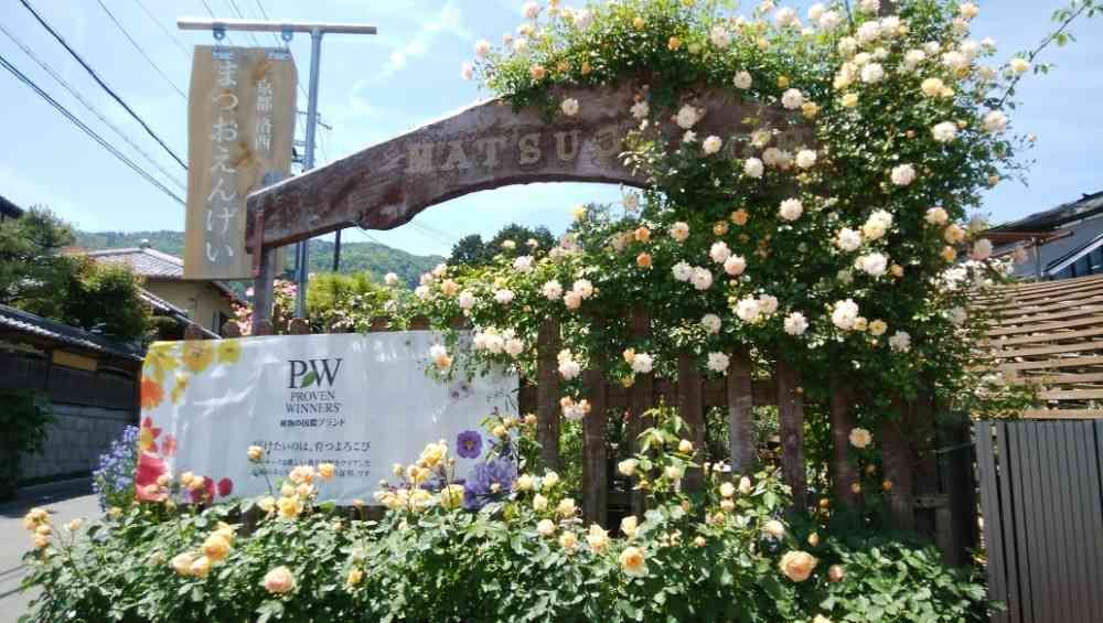 この間、まつお園芸さんに行ってきました。門から薔薇🌹薔薇🌹薔薇🌹