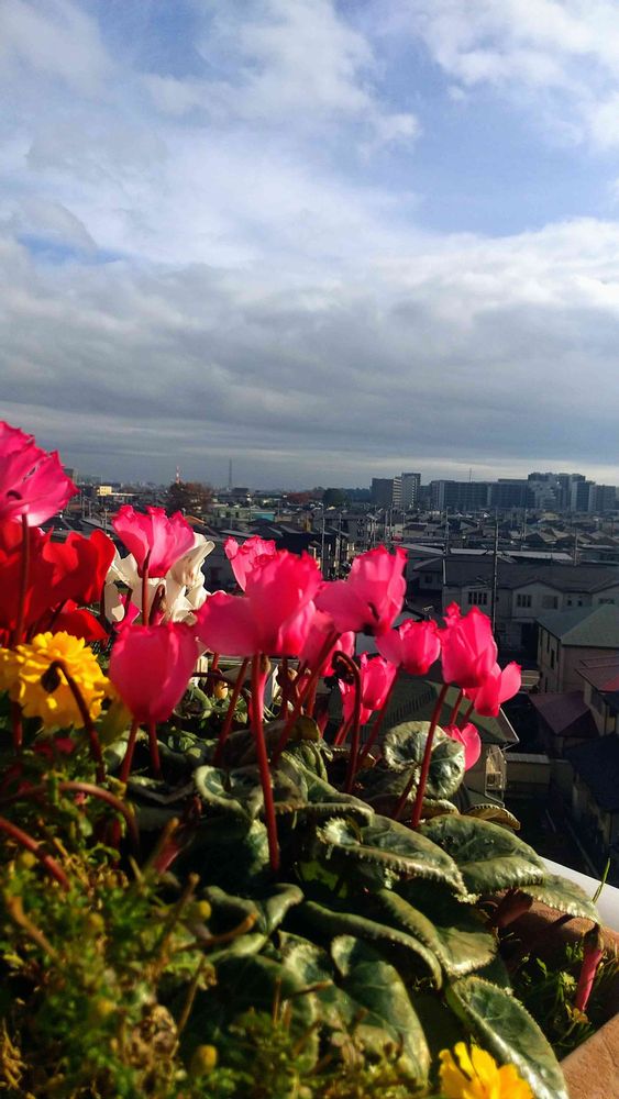 バルコニー/ベランダ,マリーゴールド,ミニシクラメンの投稿画像