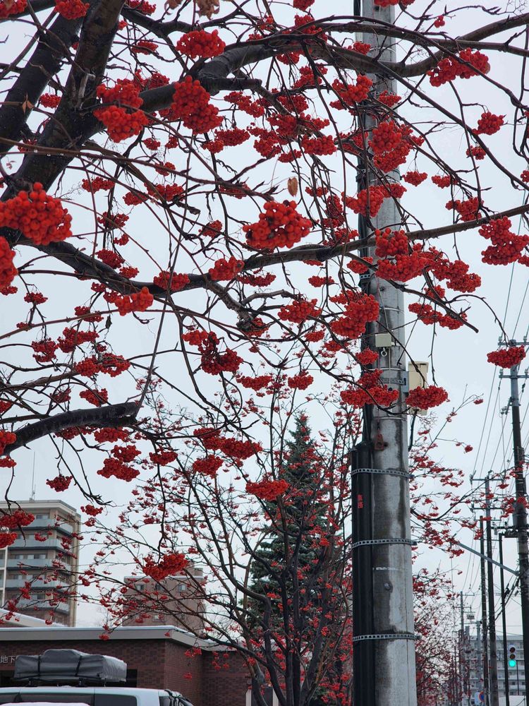 赤いナナカマドが降り落ちてくる様は、アニメのワンシーン見たいに😂
