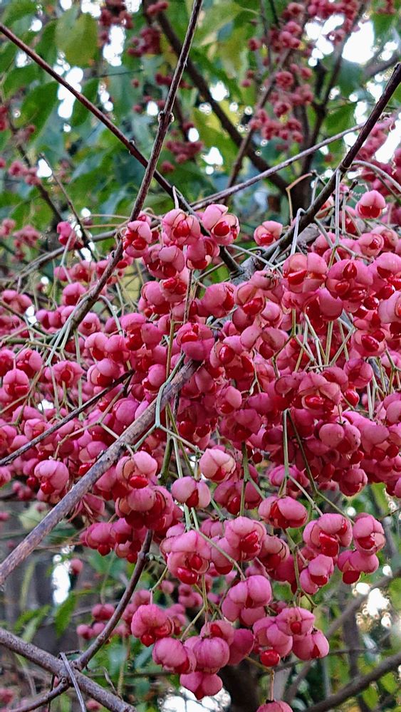 こんな鈴なりのマユミの実今までに見た事無い位の数ですね♪😊