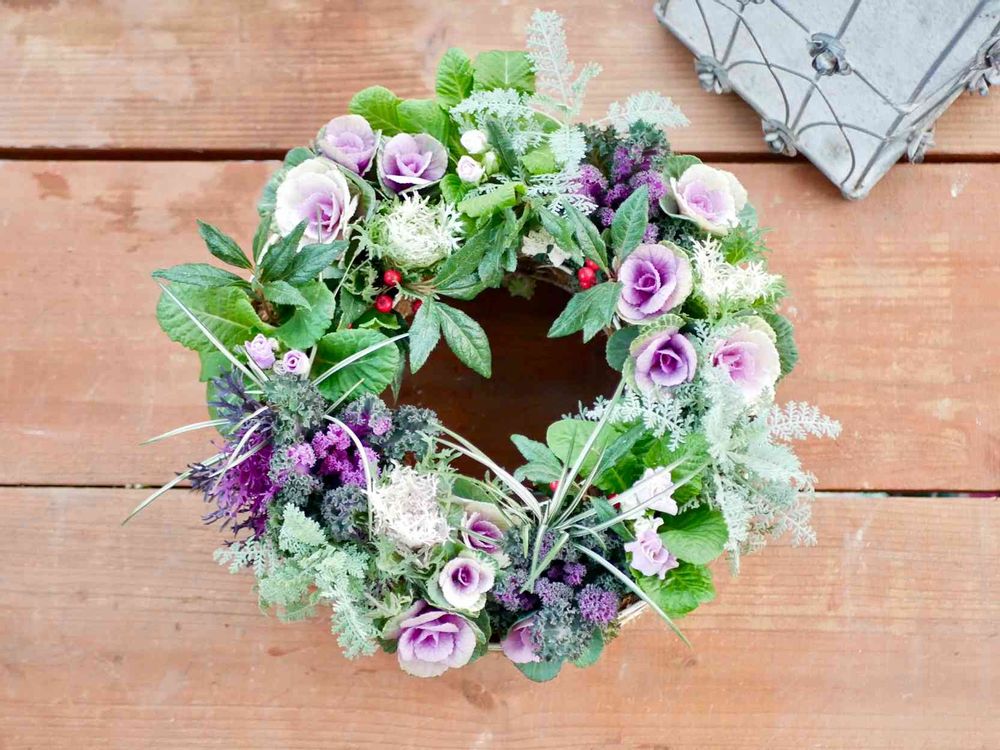 葉牡丹リース。こないだ見本で作っていた子。ありがたいことにお嫁に行きましたので、新たに作りました😊