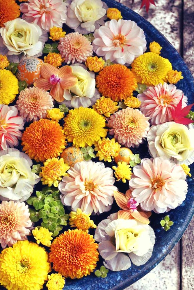 まるでみかんやレモンがプカプカ浮かんでるような花手水🏵