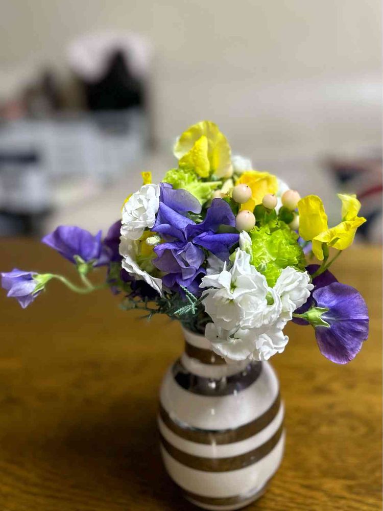 このお花の色の組み合わせ、爽やかで良いですネ✨🎉☘️🎈