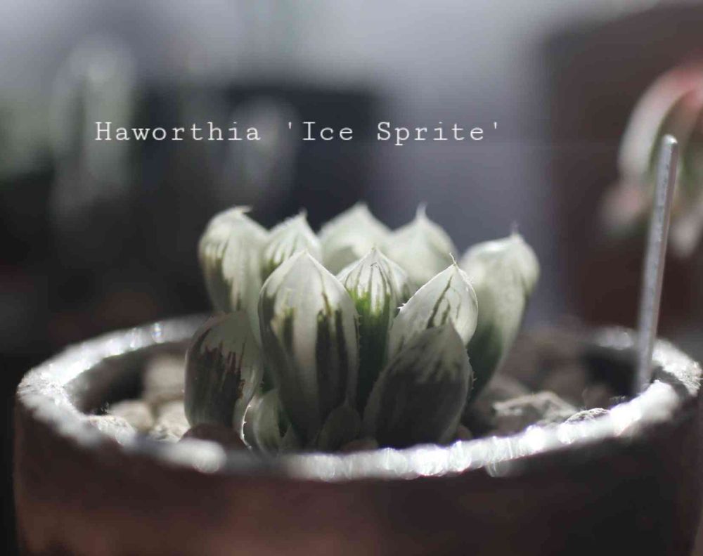 どんよりした曇り空から時々射し込む陽射しで輝く、ハオルチア·アイススプライト。🎵