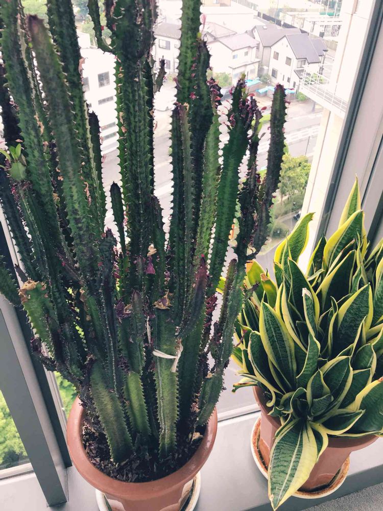 左は…うーん、ユーフォルビアの一種かなぁ。サボテンではないですョ。