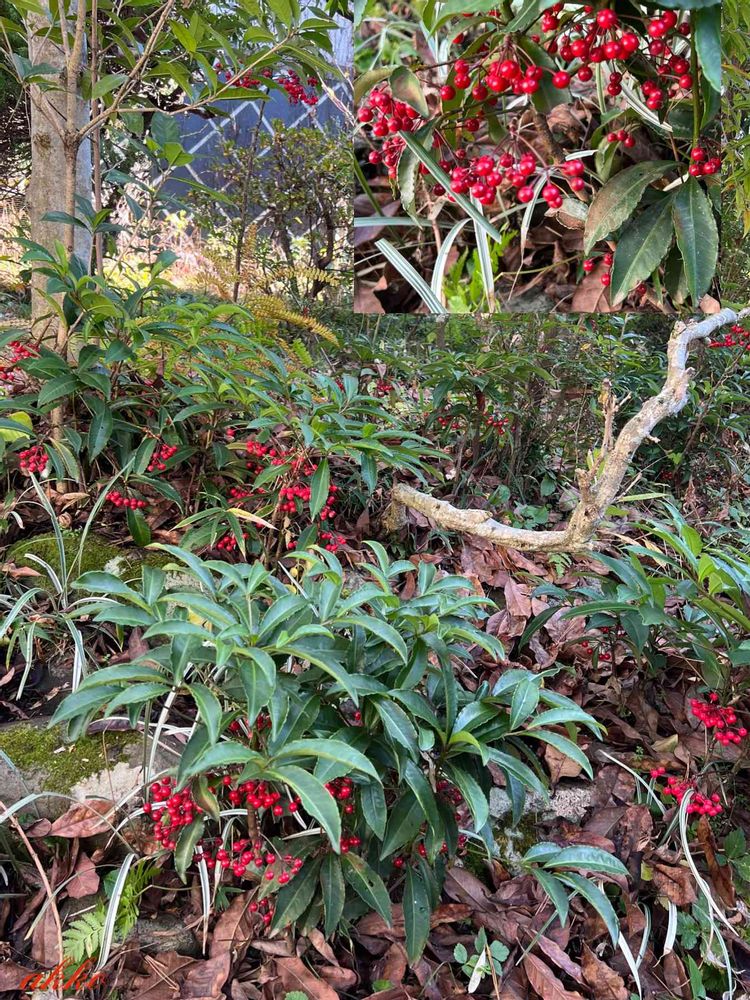 柊南天の下は、万両の実があちこちに実ってます❣